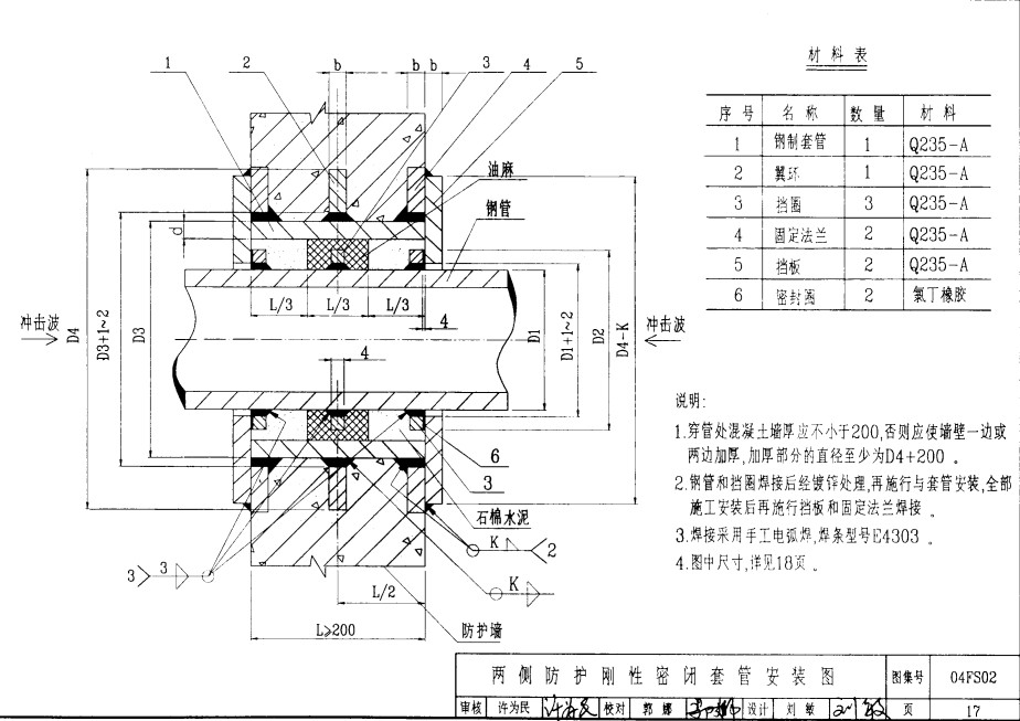 兩側(cè)防護(hù)剛性密閉套管適用于人防,地下工程,化工,鋼鐵,自來(lái)水,污水處理等管路穿墻壁要求嚴(yán)密防水之處。